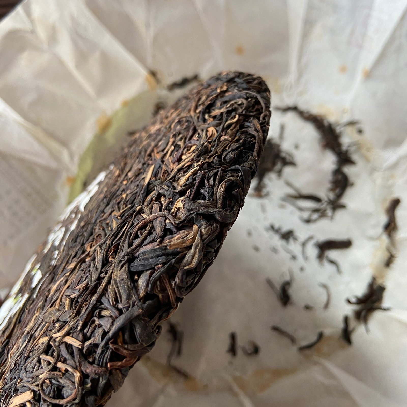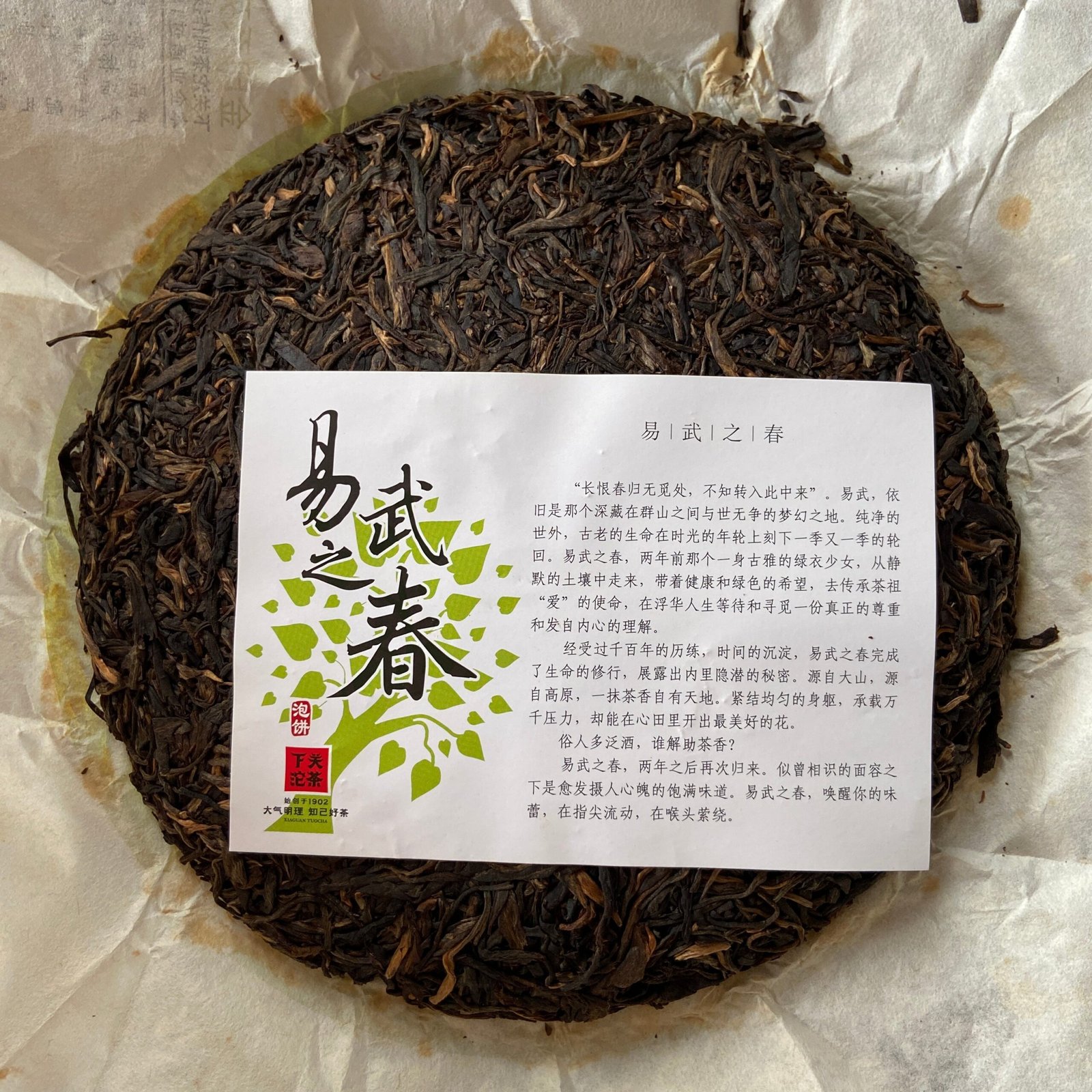 The tea leaves are tight and neat, displaying a fine appearance characteristic of high-quality Yiwu tea.