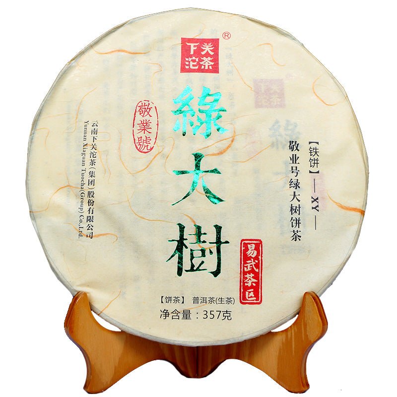 The 2017 XiaGuan “Lv Da Shu – Yi Wu” (Big Green Tree – Yiwu Old Tree) Cake 357g Puerh Raw Tea Sheng Cha offers a captivating journey into the heart of Yiwu’s ancient tea traditions, meticulously crafted from tea materials sourced from Guafengzhai (Guafeng village) in Yiwu town. As part of the esteemed “Lv Da Shu” (Big Green Tree) series, this tea embodies the essence of Yiwu’s renowned old tree teas.